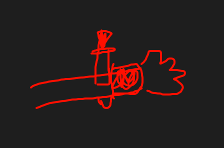 演员印象中是一个中年大叔,他的手腕上带着护腕,让台下观众检查,然后拿了很多各种药水之类的在胳膊上涂。又拿出一个匕首,是真的,应该是真的,随后大哥直接把匕首刺穿了自己的手臂,从另一侧冒出来匕首尖。给观众展示结束后,又慢慢拔出来。(如下示意图)