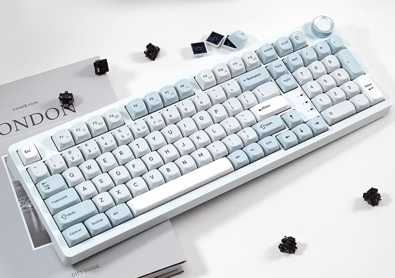是的,是平平无奇的右上角大旋钮,但是这个小配色确实很舒服,因为迈从G87没有数字小键盘,便想着第二把键盘,来个有小键盘的吧。